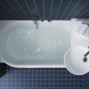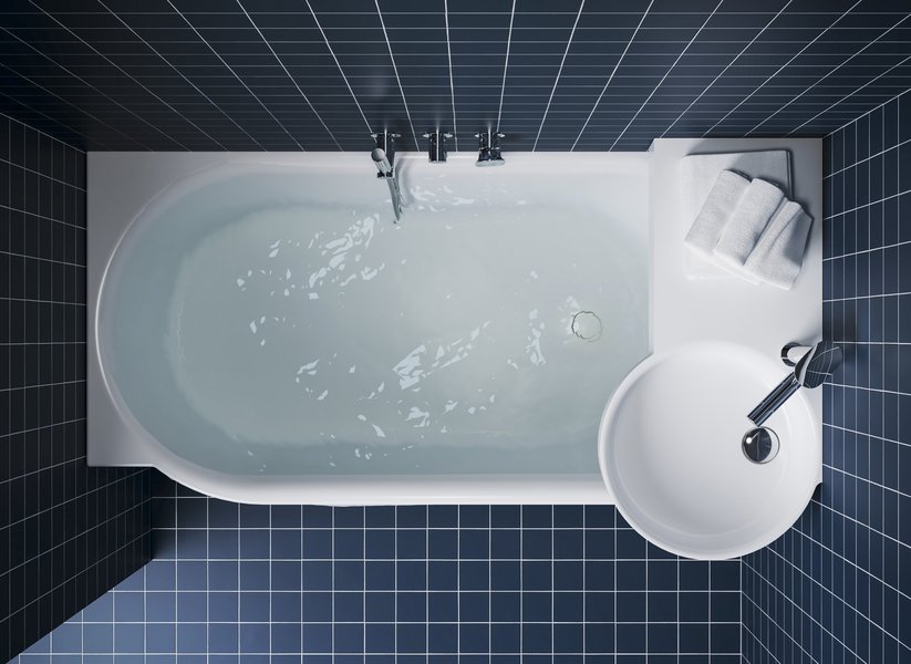 La baignoire ergonomique offre un confort optimal même dans les espaces très restreints. Vous pouvez vous y adosser confortablement et profiter d’un bain même dans un espace réduit grâce à la vasque placée au-dessus de la baignoire.