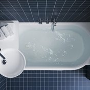 Dans la plupart des baignoires rectangulaires, nous proposons des parois de baignoire traditionnelles ainsi que des panneaux ergonomiques frontaux et latéraux. Certaines baignoires rectangulaires (You, Evolution, Magnolia, Sonata, Campanula II) peuvent en plus être équipées d’un système d’hydromassage.