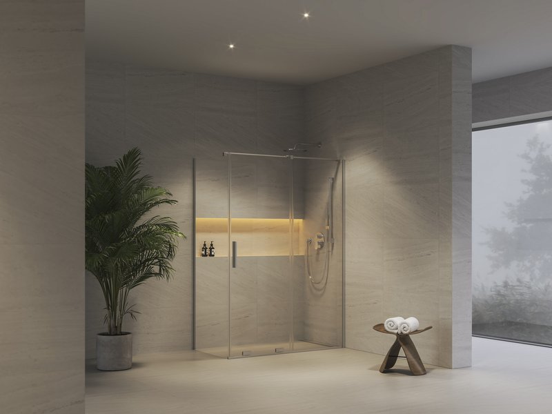Le design épuré, sans cadre, offre une fluidité qui allège visuellement l’espace. Grâce à son système coulissant très pratique, il garantit un gain de place et une grande facilité d’utilisation, même dans les petites salles de bains. Le mouvement fluide du verre robuste de 8 mm d’épaisseur et les détails soigneusement conçus assurent enfin une facilité d’utilisation durable.