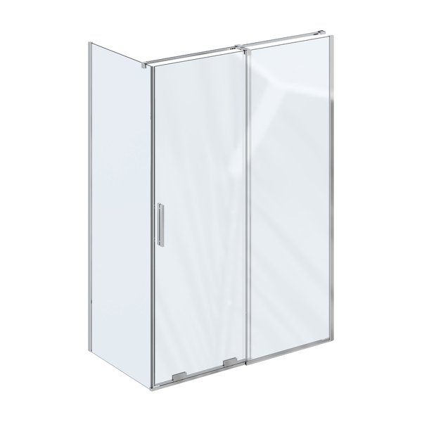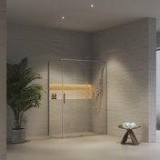 Combinez une porte de douche avec une paroi fixe et créez votre espace de douche d'une dimension allant de 80 x 100 à 90 x 140 cm.