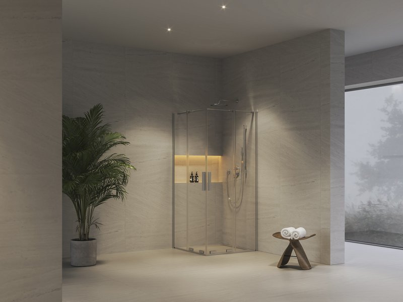 La cabine de douche se compose de deux éléments fixes et de deux éléments coulissants, qui glissent facilement grâce à des roulettes intégrées dans un rail inférieur. Elle s’installe dans un angle carrelé de la salle de bains, directement sur le sol avec gouttière intégrée ou siphon de sol, ou bien sur un receveur de douche Ravak Angela, Perseus Pro, Perseus Pro Flat ou Perseus Pro Chrome. Les barres de fixation sont incluses dans le kit de porte.