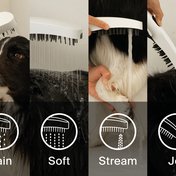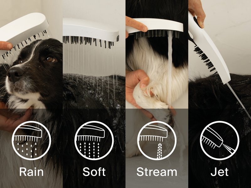 La buse à pression frontale, qui peut être actionnée à l’aide d’un bouton séparé situé à l’arrière, permet d’éliminer efficacement les saletés tenaces telles que la boue séchée.. La brosse de douche est suffisamment souple pour peigner délicatement le pelage, faire mousser le shampoing et mieux éliminer la saleté. En outre, elle procure un massage apaisant. La douchette pour animaux de compagnie peut être facilement raccordée à un flexible de douche ordinaire. Choisissez parmi notre gamme noire, blanche ou celle qui s’harmonise le mieux avec votre salle de bains.