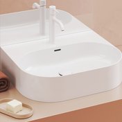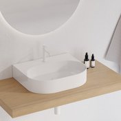 La vasque est conçue pour être placée sur un plan de travail ou sur un meuble. Sa forme lui permet d’être placée contre le mur. Les lignes droites sont légères et s’intègrent parfaitement dans un intérieur moderne.