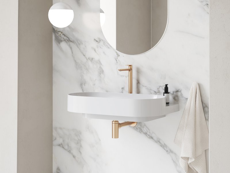 Tout ce dont vous avez besoin est à portée de main, tout en étant astucieusement rangé derrière le bord de la vasque. Ainsi, les brosses à dents, distributeurs et autres petits objets sont dissimulés facilement et ne perturbent pas l’impression esthétique de la salle de bains. En outre, les objets déposés ne tombent jamais dans la vasque.