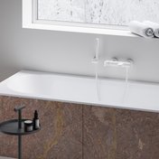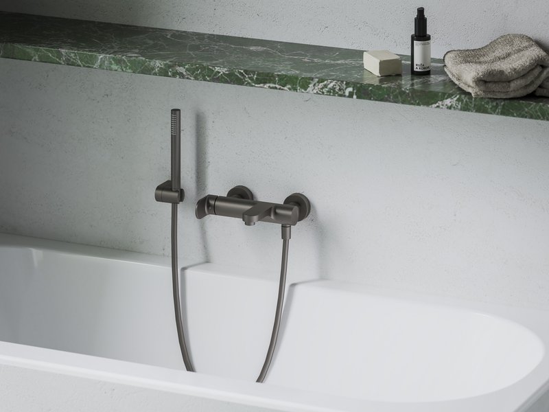 Le mitigeur mural de baignoire convient à chaque baignoire placée près du mur. L’élégance, c’est la beauté qui résulte de l’équilibre. Elle apparaît dans tous les détails du mitigeur. La fluidité de l’eau rencontre la stabilité du métal. La courbe douce du bras avec la fermeté du corps et le levier solide distinctif. L’inverseur à bouton-poussoir latéral permet de commuter facilement le débit d’eau entre le remplissage de la baignoire et la douche.