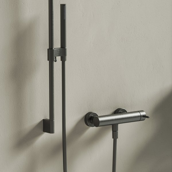 Le mitigeur mural de douche Nox convient à chaque espace de douche. La collection de mitigeurs entièrement en acier inoxydable Nox est un hommage à l’architecture et à l’artisanat de précision, à un prix abordable. La texture délicate des éléments de commande apporte au mitigeur une élégance industrielle, tandis que l’effet métallique mat des surfaces brossées atténue les reflets et crée une sensation de chaleur, de naturel et de luxe.  Il est disponible en trois couleurs: cacier inoxydable brossé, noir mat ou graphite brossé.