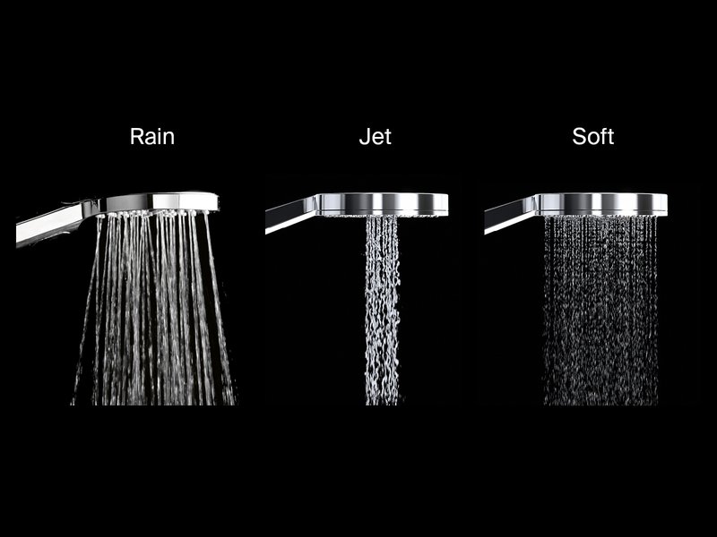 953.00 Vous ne vous ennuierez plus jamais sous la douche. Cette pomme de douche permet de profiter des effets de trois types d'écoulement de l'eau qui sont "RAIN", "JET" et "SOFT".