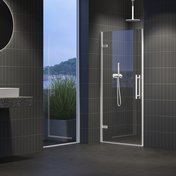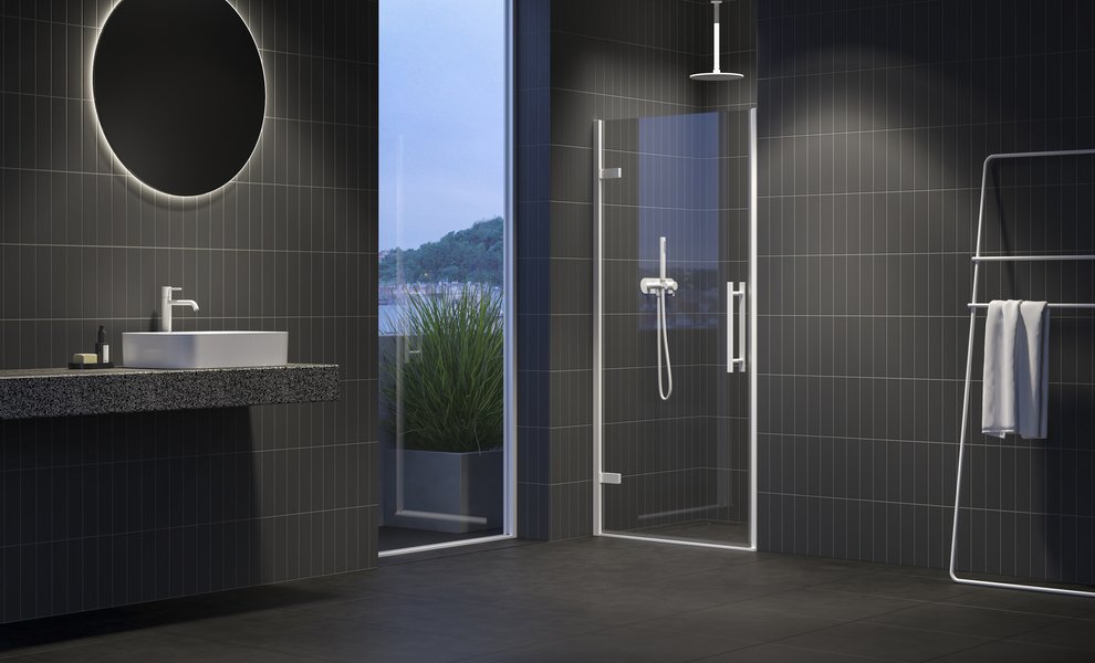 Porte de douche monobloc Cool! en chrome brillant ou en noir. Remplissage en verre transparent avec revêtement protecteur RAVAK Anticalc®. Système d’ouverture à charnière. Produit réversible pour la variante droite et gauche. La solution idéale pour créer un espace de douche à partir d’une niche de 80 à 90 cm de large.