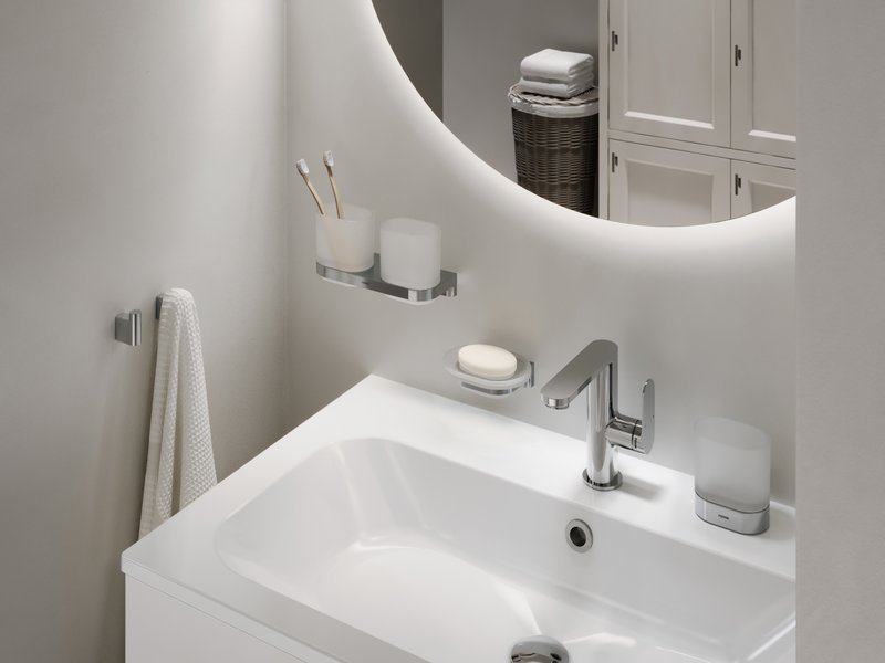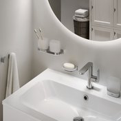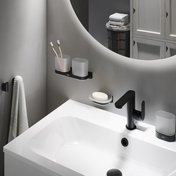 Le porte-savon en design Chrome II est très pratique dans la salle de bain pour un lavage rapide des mains. Le produit est disponible en chrome et noir mat.